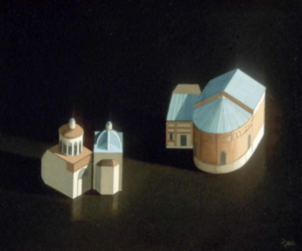 I have painted a number of small works based on parts of a paper model of Basilica San Ambrogio in Milan which has three idiosyncratic side chapels. This was the first.